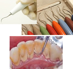 キュレットスケーラーという専用の器具を歯周ポケットの中に入れ、歯の根に沿わす様に上下に動かし、根についている歯石を除去します。また、レントゲン写真にも根の先の周囲に付いている歯石は写りますので、1つ1つ確認して歯周ポケットの中をきれいにします。